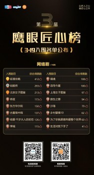 “一直在关注鹰眼公号,看了很多行业相关文章,从中了解了不少行业资讯。在整个行业经历了2018的起伏与沉淀,2019蓄势待发之际,匠心榜以行业眼光和专业态度评选业内好公司、好作品,是有意义有意味有意思的一件事。”