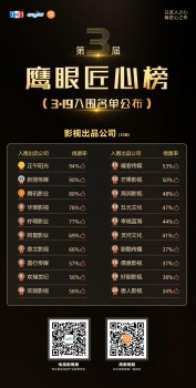 “鹰眼团队以媒体咨询顾问的基因,服务影视内容产业,体现了专业、理性、客观的职业精神。鹰眼的很多优秀文章,我们内部经常分享学习,有启发、有借鉴。第三届鹰眼匠心榜以影视从业者大样本评委的角度,评选出好项目和好公司,值得期待。”