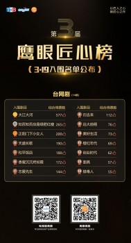 “鹰眼必须是独具慧眼。鹰眼匠心榜必须是独树一帜的品牌,创作为先,匠心打造,从不人云亦云,从不随波逐流。”