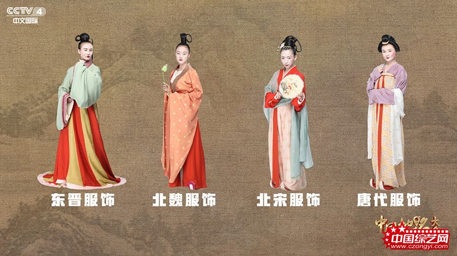 据中国装束复原团队美术组组长胡晓透露,他们团队成立十多年来,已经复原了四百余套历代服饰。节目中,胡晓不仅带来了分别代表东晋、北魏、北宋、唐代的四件服饰,还现场揭秘了古代女子装扮的不同特点。在他的讲述以及模特的展示下,大家对不同时代不同的美有了更为深刻的认识。而康震老师也有感而发,亲自动手画了唐代时期的《十眉图》,他表示:“任何一种时尚和潮流,有时候既要因袭传统,又要努力创新。”