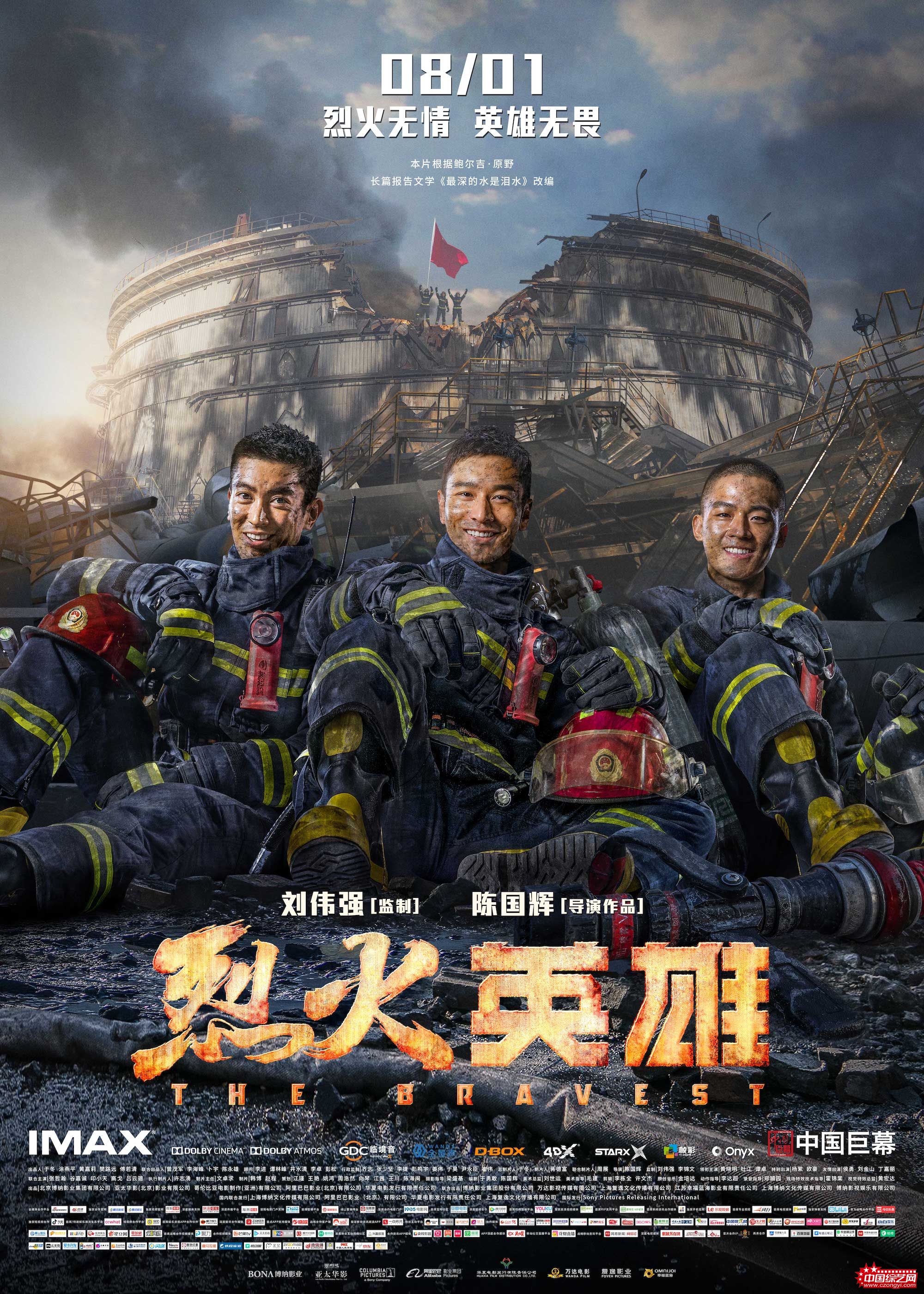 电影《烈火英雄》由博纳影业集团股份有限公司、亚太华影(北京)影业有限公司、哥伦比亚电影制作(亚洲)有限公司、阿里巴巴影业(北京)有限公司、华夏电影发行有限责任公司等出品,刘伟强、李锦文监制,陈国辉导演,由黄晓明、杜江、谭卓领衔主演,杨紫、欧豪特别出演,侯勇友情出演,张哲瀚、谷嘉诚、印小天、高戈联合出演,影片将于8月1日上映