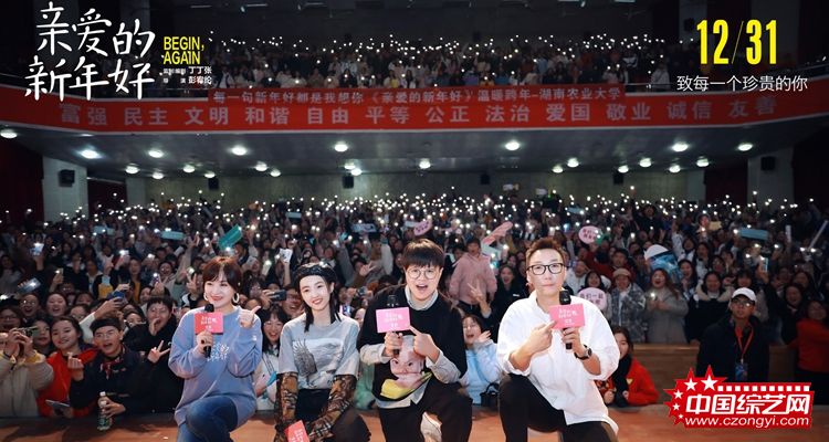 电影《亲爱的新年好》“每一句新年好都是我想你”主题路演来到湖南长沙。12月20日,监制及编剧丁丁张与导演彭宥纶携主演张子枫空降长沙学院、湖南农业大学两所高校,与大家走心分享影片台前幕后的故事以及自己的岁末感悟。同学们纷纷畅谈自己的生活和对未来的向往,还有不少人借电影向心里最珍贵的那个人告白:“我想和你一起看《亲爱的新年好》,在2020年零点到来的时候和你说第一句‘新年好’。”