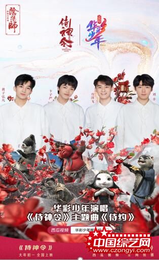 2月13日,由《上线吧!华彩少年》中四位国风少年卞子严、方洋飞、黄子弘凡、刘丰携手全新演绎的东方奇幻电影《侍神令》主题曲《侍约》MV在西瓜视频正式发布。据悉,该部电影由陈国富、张家鲁监制,李蔚然执导,陈坤、周迅、陈伟霆等共同主演,电影原版主题曲《侍约》由陈伟霆燃情演唱。
