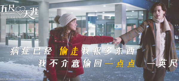 《五尺天涯》早前宣布引进国内时便备受瞩目,但由于疫情等原因迟迟未能上映,令一众网友苦等。而影片主人公因疾病被迫隔离的光影故事,也意外在2020年照进了我们的生活。因此定档预告中“隔着口罩说爱你”的桥段,格外贴切当下,现实感十足,甜虐属性加倍,感动网友纷纷艾特恋人、好友,约定一起去影院看看“好磕的爱情”。越过寒冬,就让我们用《五尺天涯》重启那些被搅乱的人生计划,学着女主角斯黛拉向命运偷回那“一尺”的不公,“人生苦短,珍惜眼前”,相信真爱,为自己而活!