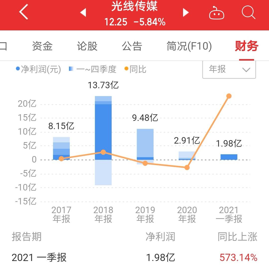 光线传媒是所有影视公司里真正最抗跌的一个,在其他公司都爆雷的2018-2020年,光线均实现了盈利,年度净利润分别为13.73亿元、9.48亿元、2.91亿元,今年一季度净利润1.98亿元,“鹤立鸡群”。