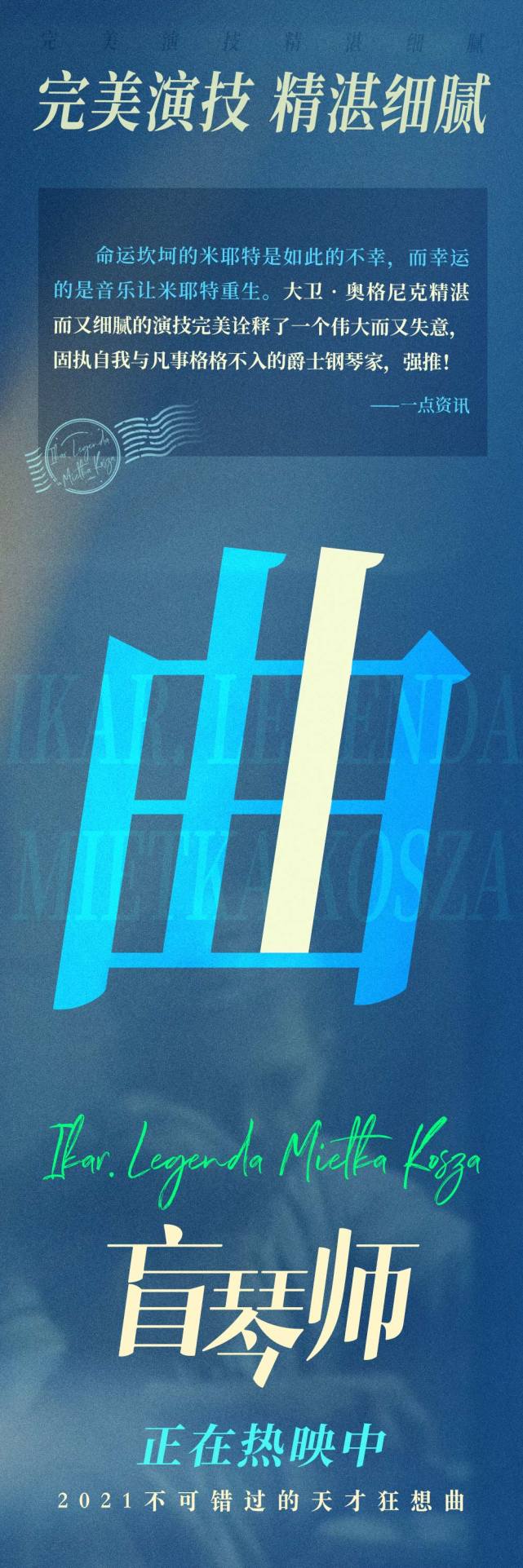 电影《盲琴师》由导演马切伊·佩普日察执导,大卫·奥格尼克领衔主演,波兰殿堂级爵士钢琴家、音乐制作人莱谢克·莫斯德担任配乐,讲述天才钢琴家对抗不公命运的传奇故事。电影正在热映中,看天才盲人钢琴家心碎又令人温暖的一生。