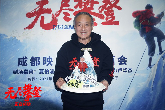 电影《无尽攀登》给予许多观众勇气与力量,而我们也在源源不断地收获许多观众的支持与鼓励。一位今年参加完高考的大一新生告诉主创:“之前就知道了夏伯渝的故事,今年我的高考作文就写了夏老师,没想到今天能够圆梦见到他。我只知道夏老师四十三年的追梦故事,没想到电影中的他是个那么可爱、那么酷的爷爷。