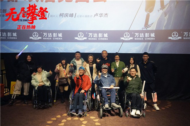 电影《无尽攀登》全国路演精彩继续,无腿登顶珠峰中国第一人夏伯渝与制片人柯庆峰马不停蹄赶到“天府”成都与观众见面交流。12月10日,有一群特殊观众走进电影院观看影片,他们有着不同的成长背景,但他们都是2008年5.12汶川特大地震的亲历者。影片结束后牛钰、李安强、杨兰、牛裕、李中秋、魏敏、马聪、向孝廉、邱洪龄、李小群十位穿着假肢的汶川地震亲历者来到台前与夏伯渝互动,每个名字的背后都是一段与命运抗争的励志故事。