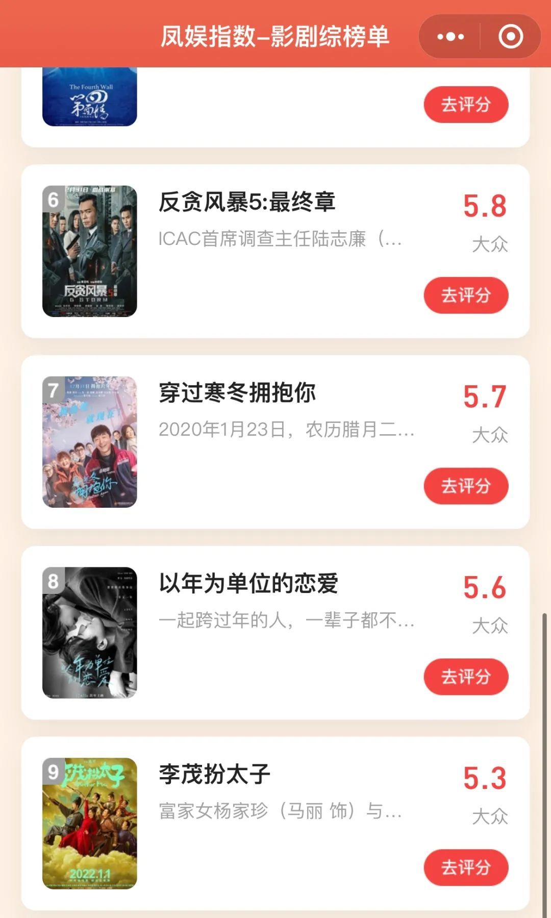 《穿过寒冬拥抱你》《以年为单位的恋爱》《反贪风暴5》《李茂扮太子》,全不及格。