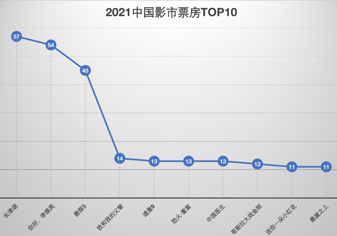 与之对应的重要现象是,2021年,20亿、30亿票房的电影消失了。