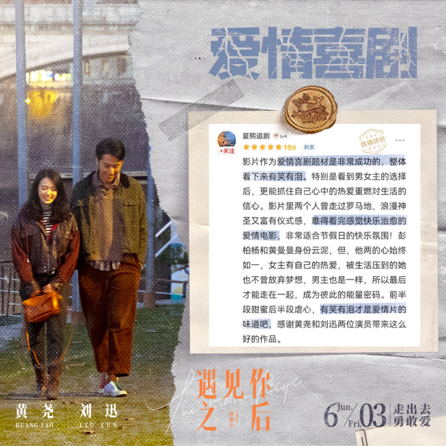 而另一位观众对影片中曼曼和彭柏杨为了爱情做出的努力有很大感触:“《遇见你之后》以喜剧片作为基底,让人笑完之后产生深深的思考,男女主为了爱情变成更好的自己,这才是最好的爱情。”同时也有不少观众认为影片是一部能够治愈人心的电影,“真爱不易,遇见了要珍惜。谢谢《遇见你之后》给了努力追爱的勇气。”