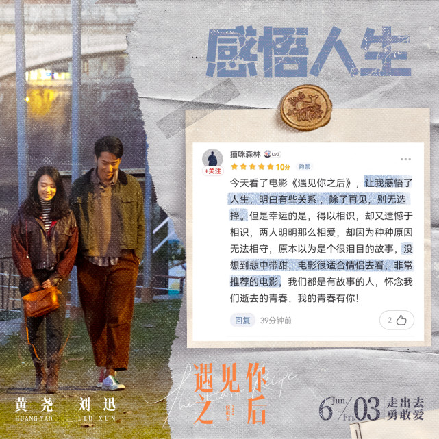 在你的爱情会因为现实分手吗?电影《遇见你之后》中留学生黄曼曼和歌手彭柏杨面对现实与爱情的两难抉择,最终相爱之人难相守的动人故事引无数观众流下了泪水。不少观众在猫淘平台抒发自己的感想,“很幸运遇见你,却遗憾只是遇见你,这个真的狠狠虐到我了”,也有观众表示“剧情太揪心,男女主面对现实的无助和绝望,仿佛就是现在的自己,代入感很强了!”还有观众被戳中心事,动情的分享自己的故事,“和男朋友恋爱三年,感情很好,准备结婚了,但是我妈却提出了必须全款买房的要求,男友家境一般根本没办法满足妈妈的要求。三年的感情一瞬间被一套房子压垮了”。