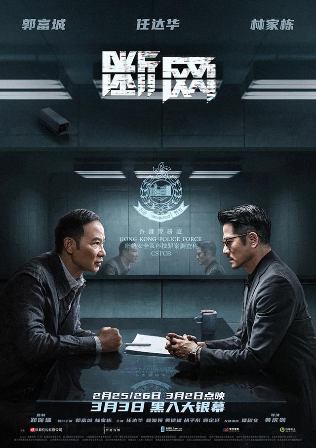 时光网讯今日,定档3月3日、并将于2月25、26日及3月2日进行点映的港产犯罪片《断网》释出一组对峙版海报。海报中的三影帝气势逼人,针锋相对地为各自的阵营而战。