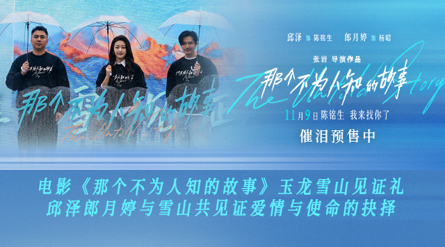 11月7日,由张岩导演,邱泽、郎月婷领衔主演的电影《那个不为人知的故事》在丽江举办玉龙雪山见证礼。在丽江市文化和旅游局、世界文化遗产丽江古城保护管理局、丽江玉龙雪山省级旅游开发区管理委员会的大力支持和协助下,导演张岩,领衔主演邱泽、郎月婷与众多观众相聚玉龙雪山,一起见证陈铭生、杨昭爱情与使命的抉择,回味他们生死不渝的恋歌,不仅仪式感拉满,更彰显出“跟着电影去旅游”活动将电影与旅游相结合的独特魅力。