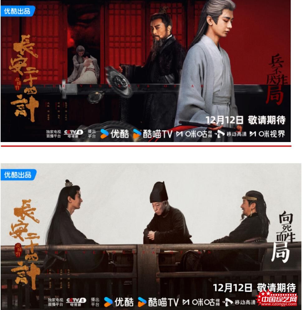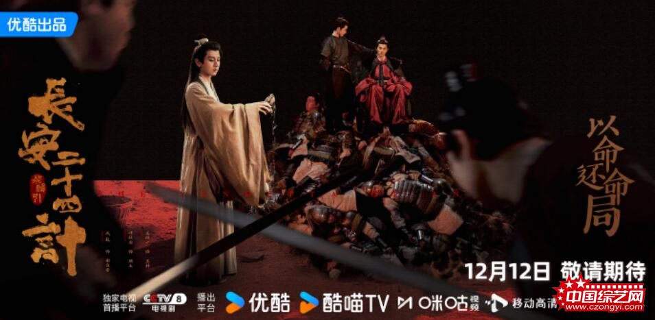 由成毅领衔主演,刘奕君、王劲松、周奇、佟梦实领衔主演,徐璐特邀领衔主演,倪大红特邀主演,张涵予、叶祖新特邀出演,优酷、西安七曜一九一制作,周静、梁超担任总制片人的古装复仇剧集《长安二十四计》12月12日起登陆CCTV-8,优酷、咪咕同步全网播出。