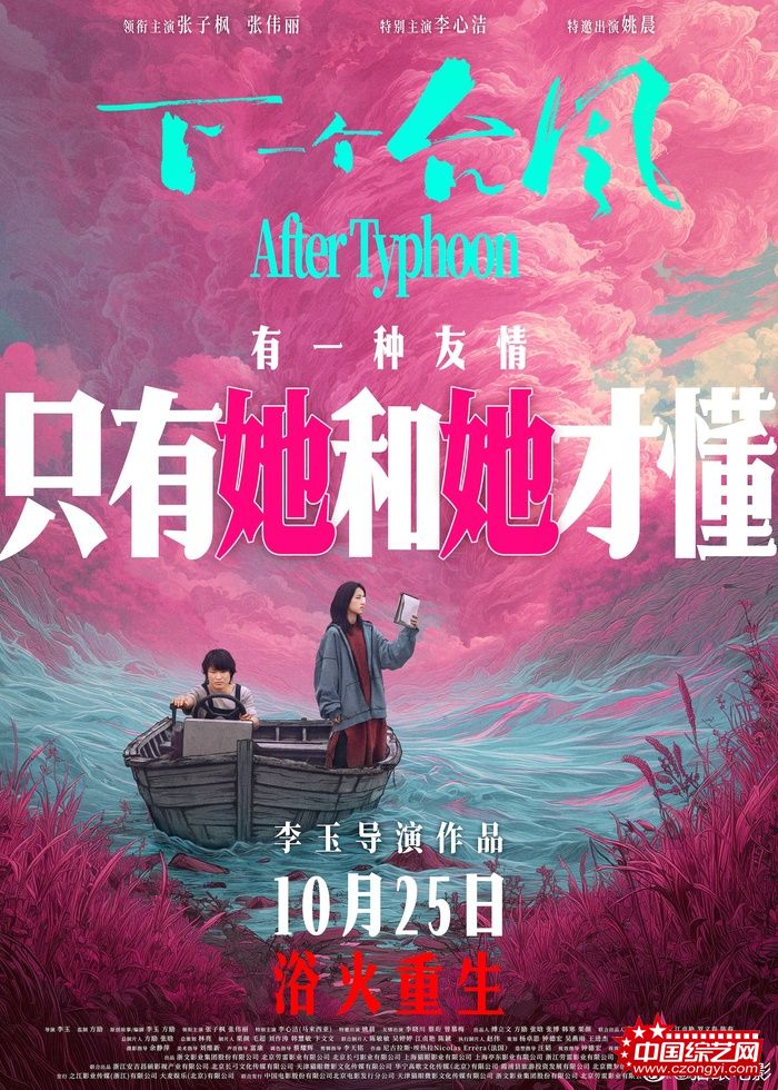 电影《下一个台风》由李玉执导,张子枫、张伟丽领衔主演,李心洁特别主演,姚晨特邀出演。影片直面女性现实困境,讲述了在毕业聚会中遭受老师侵害的城市女孩林沫沫(张子枫饰),与失语女孩阿汐(张伟丽饰)在渔村相遇,彼此支撑,抵抗人生台风的故事。