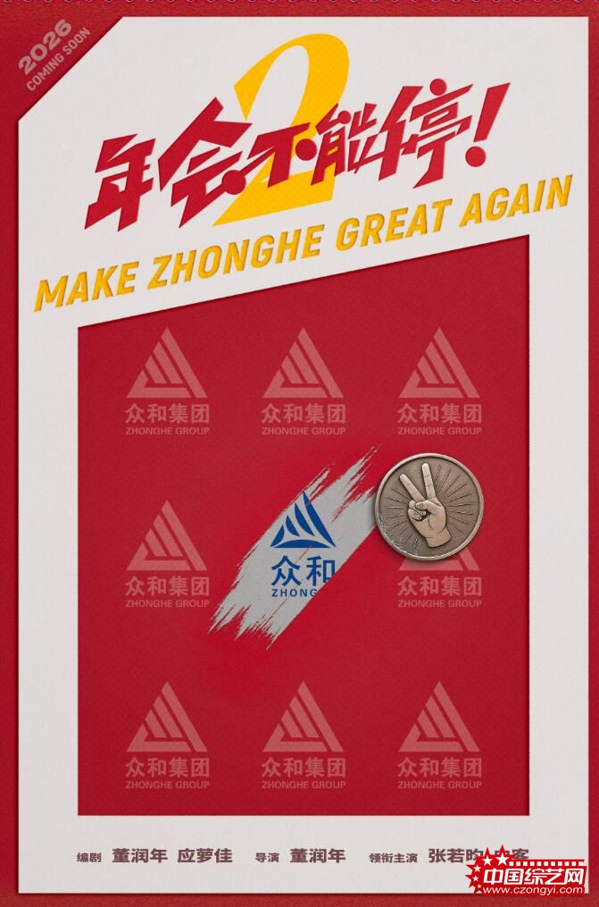 由董润年导演携原班人马打造的电影《年会不能停2!》首发概念海报,并正式官宣张若昀、白客领衔主演。概念海报被巧妙设计成一张刮刮乐,硬币刮出众和集团的新标志,昭示出续集故事仍将围绕该集团展开,略有变化的标志图形则似在暗示集团将迎来全新转型发展。而硬币上的手势,表明这是《年会不能停!》系列的第二部作品,“广进”计划终止之后,打工人将如何进一步整顿职场,引人遐想。