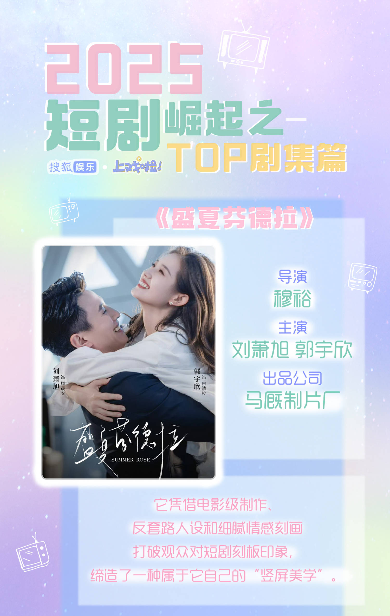 《盛夏芬德拉》无疑是2025年爆款短剧中最具光彩的一部,上线2天破亿,连续4天霸占热播榜&新剧榜双TOP1,最高单日热度冲上1.2亿,刷新平台历史纪录。作为一部现象级的作品,这部剧以44亿播放量成为秋季爆款,被誉为当之无愧的“短剧界细糠”。它凭借电影级制作、反套路人设和细腻情感刻画打破观众对短剧刻板印象,将一个“豪门契约婚姻”这样老旧的主题,讲述出了完全不同以往的气质与腔调。“盲婚哑嫁”的两个当代都市人,在一场包办婚姻里,彼此用尊重和理解去打破世俗的壁垒,挣脱利益的枷锁,最终实现双向奔赴。更值得一提的是,《盛夏芬德拉》缔造了一种属于它自己的“竖屏美学”,屏幕上下之间的光影对位,人物左右之间的对仗构图,无不在烘托两个角色之间欲拒还迎的拉扯,而其实,正是这种你进我退的拉扯,才能让这部剧真正跳出了短剧的审美框架。