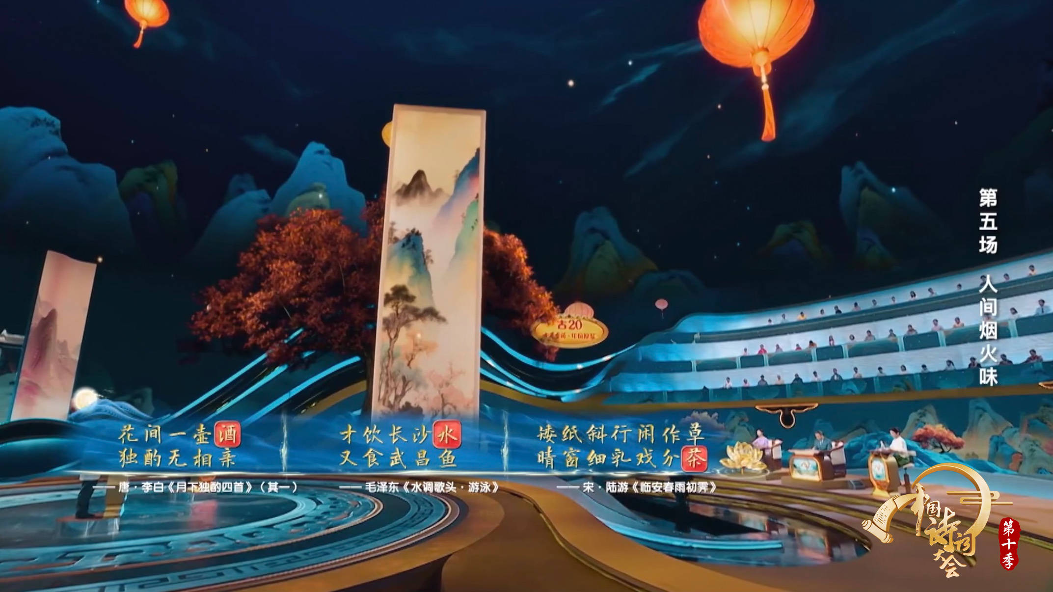 节目开篇,主持人龙洋的一段深情解读,便将诗词与人间烟火紧紧相连:“人间有味,是‘采得百花成蜜后’的甜,是‘桃花流水鳜鱼肥’的鲜,是‘橙黄橘绿时’的酸,是‘红泥小火炉’的暖”,这些看似平淡的诗句,写的都是我们最熟悉的生活场景。
