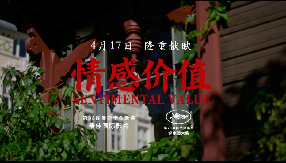 在国际颁奖季斩获多项大奖、备受瞩目的挪威剧情片《情感价值》(Sentimental Value),今日正式定档4月17日全国公映。这部由挪威著名导演约阿希姆·提尔执导,雷娜特·赖因斯夫、斯特兰·斯卡斯加德、艾丽·范宁联袂主演的作品,自戛纳首映以来收获广泛赞誉,如今终于将与国内观众在大银幕见面。